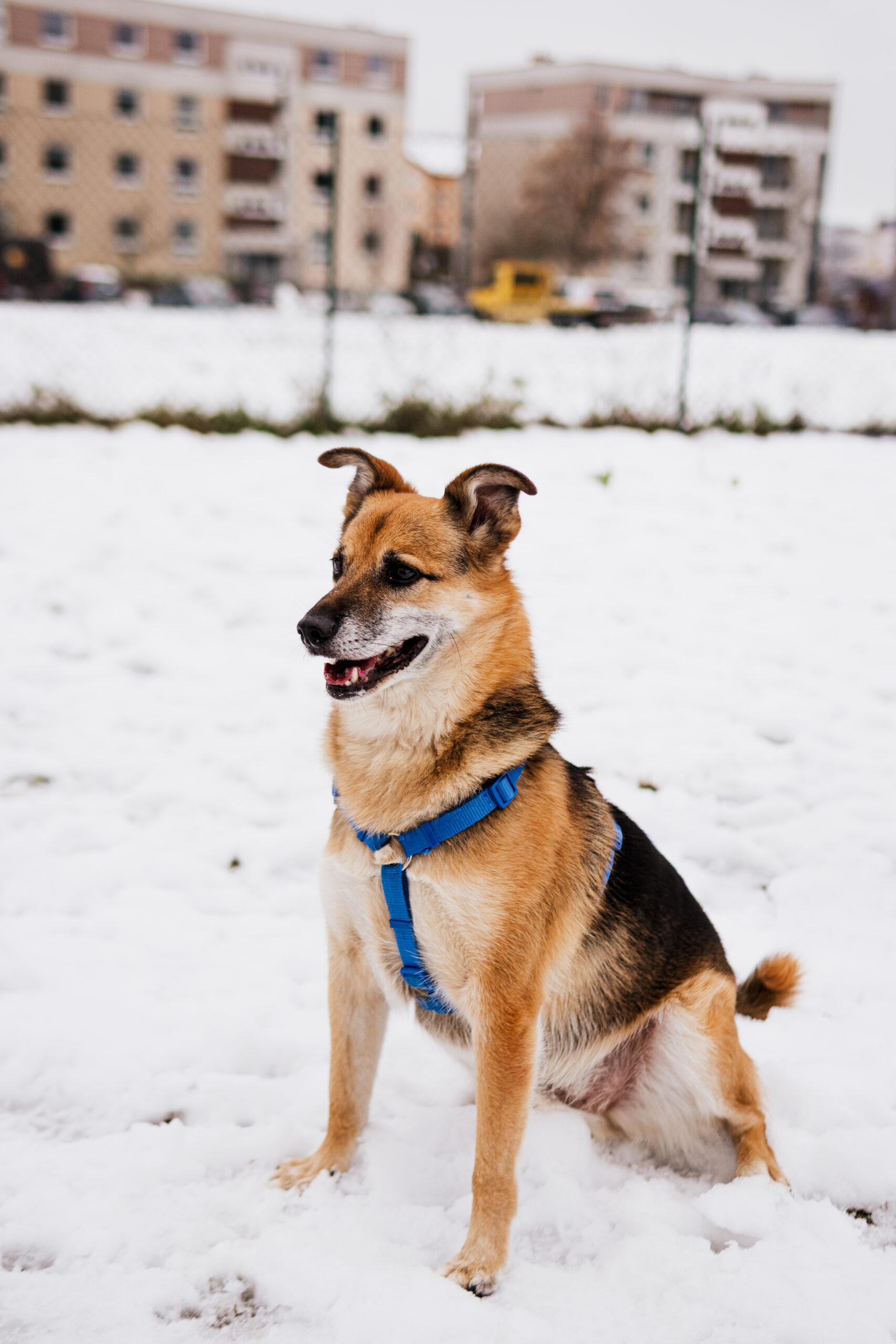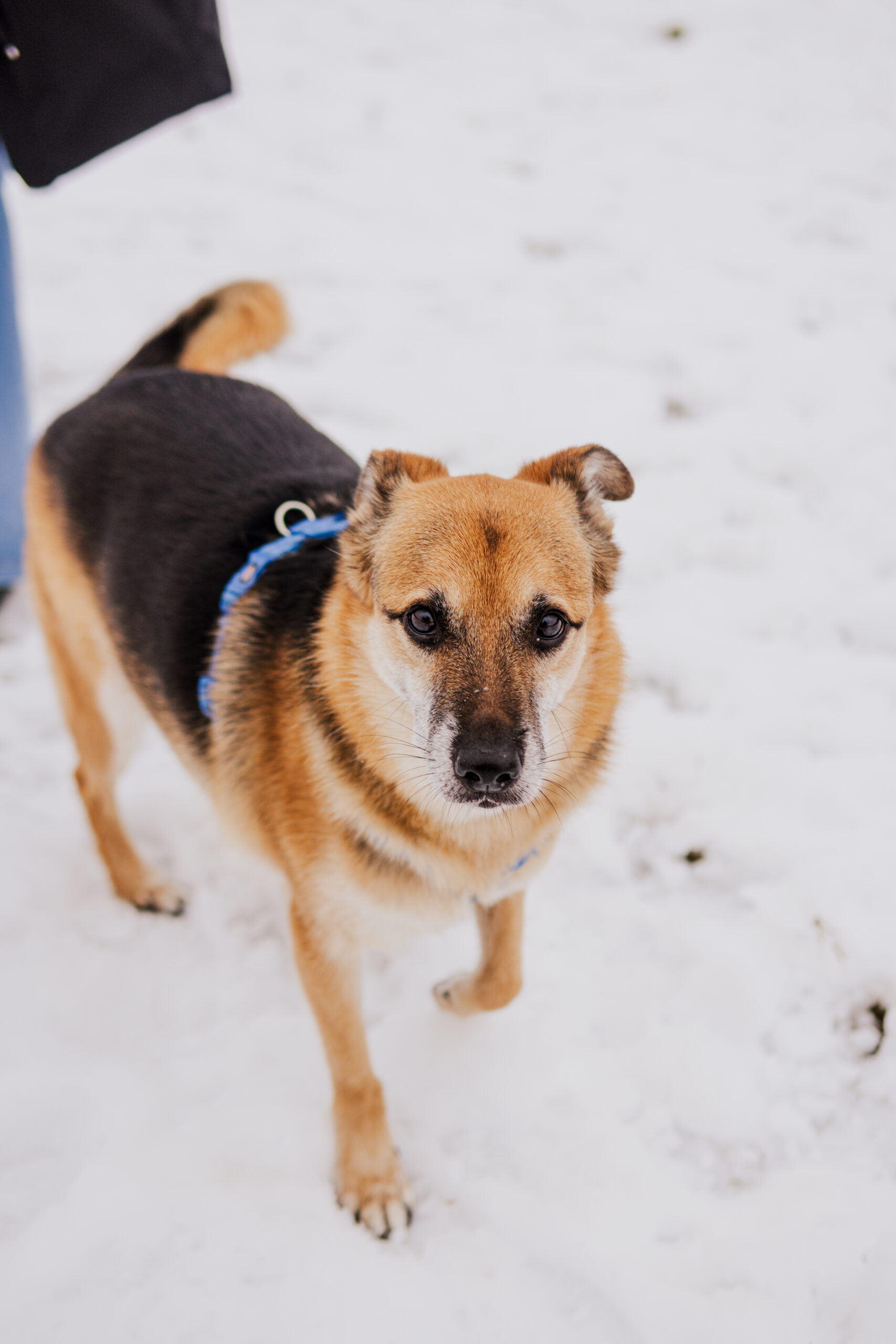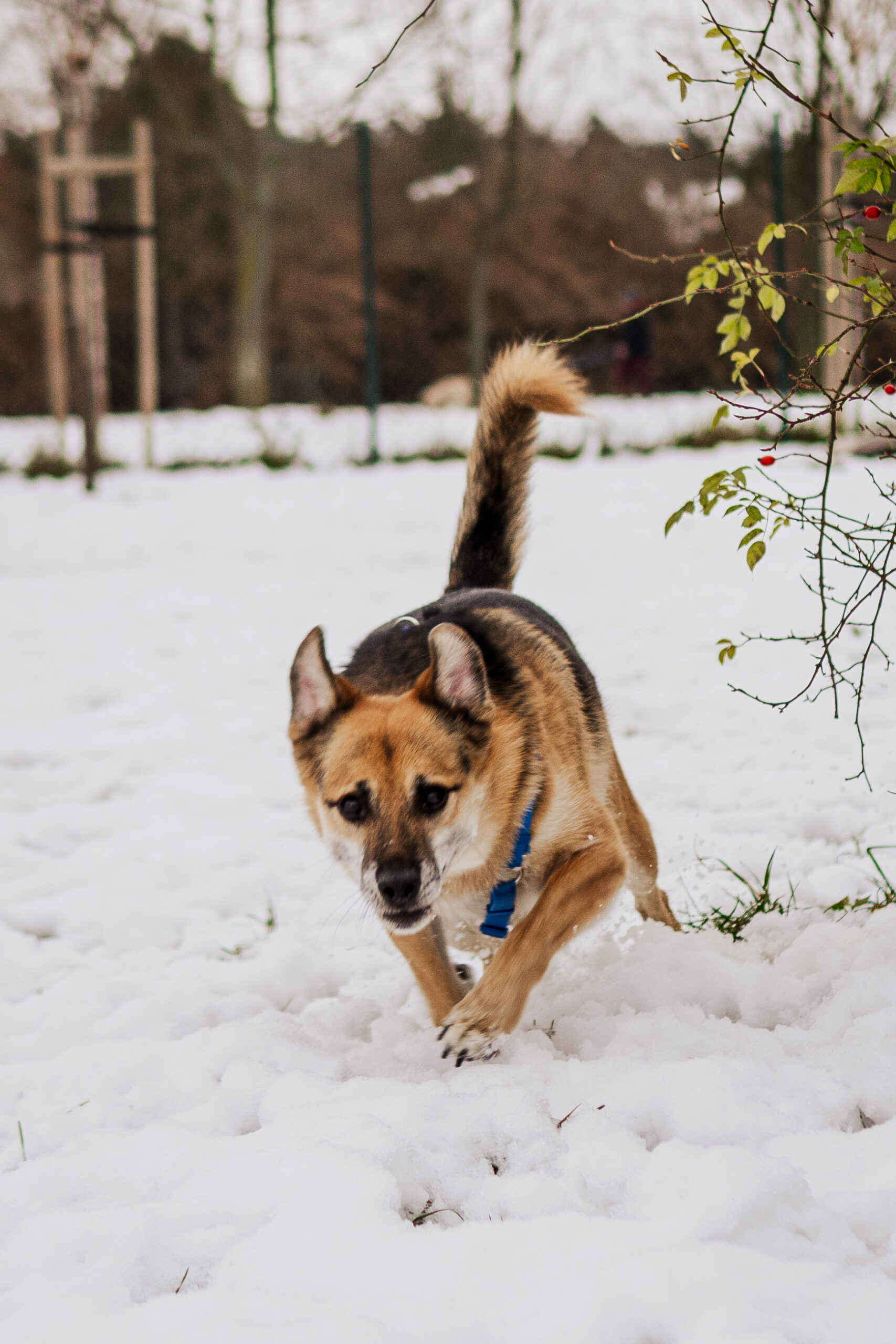 Jego zachowanie na spacerach również zasługuje na podziw, nie ciągnie i potrafi obojętnie przejść obok innych psów, choć nad tym wciąż sumiennie pracuje. Nawet w emocjach słucha wskazówek opiekuna, często spoglądając na niego w poszukiwaniu wsparcia. Od zaczepek bardziej interesuje go wąchanie mijanych krzaków.